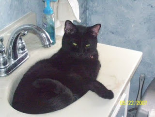 She says she's just been blah & not feelin up to helpin us. Says all we do is eat, sleep, & poop anyway. Oh yeah? What about when "Daddy" put in the new cold air blowy thingy & Sammy jumped out the window?? You almost had a heart attack...that was exciting, wasn't it? Luckily, Sammy hadn't ever been outside, so he was tippy toein in the grass & "Daddy" caught him right away. But still, that was something to be blogged about, wasn't it?